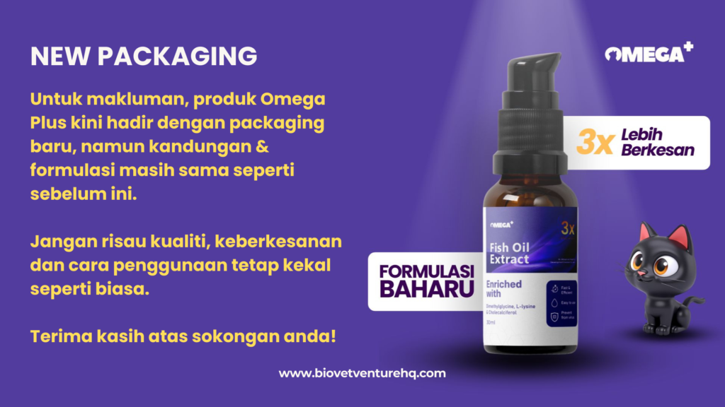 Ya! Biovet Omega Plus tingkatkan imuniti, kurangkan selsema & bantu pertumbuhan bulu yang lebih sihat.